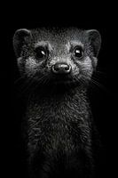 Een levendig wezen met grote, nieuwsgierige ogen en een zachte, ondeugende uitdrukking trekt ieders aandacht. Het fascinerende contrast tussen de donkere achtergrond en de fluweelzachte vacht geeft de afbeelding een bijzondere diepte. Ideaal voor in de woonkamer om het gesprek op gang te brengen en een gezellige sfeer te creëren.