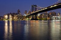Koop de foto Manhattan Bridge over East River in New York in de avond van Merijn van der Vliet op canvas, aluminium dibond, (ingelijste) fotoprint, behang en ArtFrame, op maat geprint in Fine-Art kwaliteit.