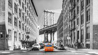 Manhattan Bridge in zwartwit en een New York Yellowcab, selectieve kleur.