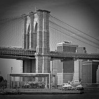 Skyline van het zuidelijke deel van New York City met de Brooklyn Bridge op de voorgrond.