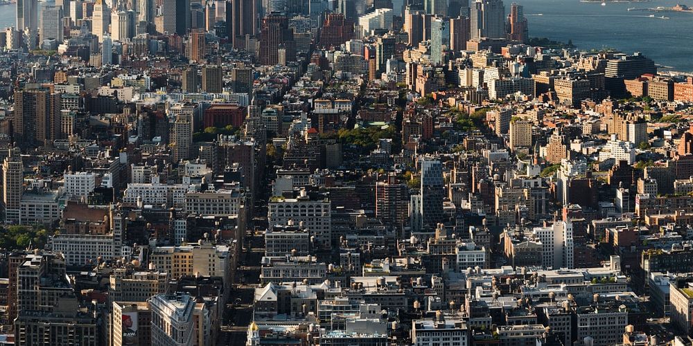 Zicht vanaf het Empire State Building naar Lower Manhattan, One World Trade Center, Hudson-rivier, Manhattan, New York City, New York, VS