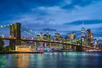 Manhattan en Brooklyn Bridge bij nacht, New York City, VS
