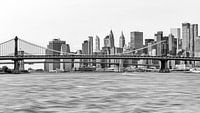 Panoramafoto van de skyline van de stadswijk Manhattan in New York City (Verenigde Staten), uitgevoerd in zwart-wit.