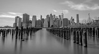 Manhattan in zwart wit, gezien vanaf Brooklyn Bridge park. Lange sluitertijd met ND filter.