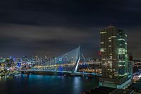 Op de foto zijn onder andere de Erasmusbrug en het gebouw de Rotterdam te zien.