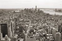 Mooi uitzicht op Manhattan, New York in zacht-sepia, gezien vanaf Empire State Building. Zelfs het Vrijheidsbeeld is nog te zien aan de horizon.