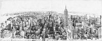 Je ziet onder andere het Empire State Building en links in de verte de Williamsburg Bridge die Manhattan en Brooklyn met elkaar verbindt.