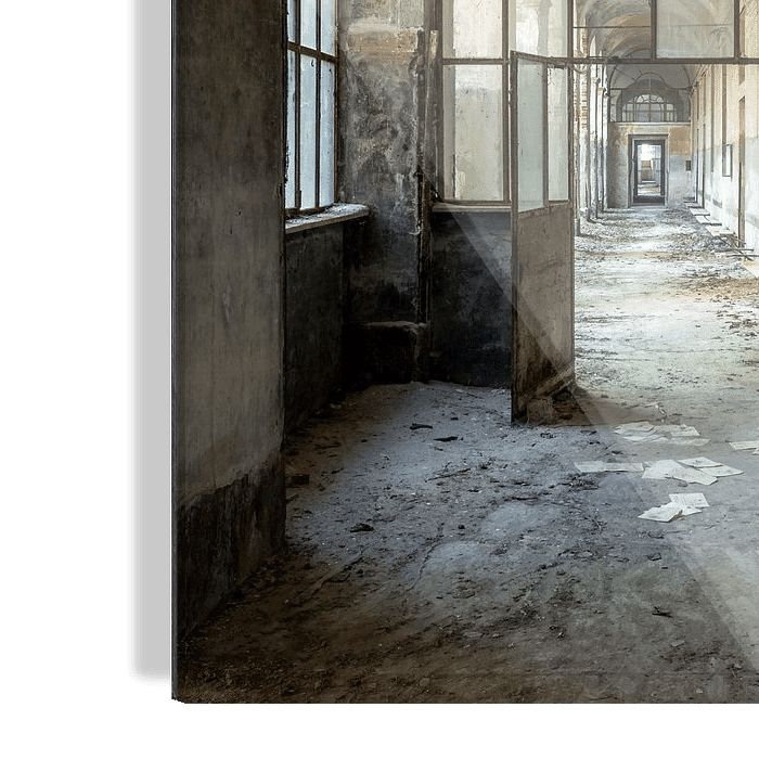 Voor deze prachtige gang met diepte moesten we in het midden van de nacht naar binnen sluipen in dit verlaten gebouw in Italië.