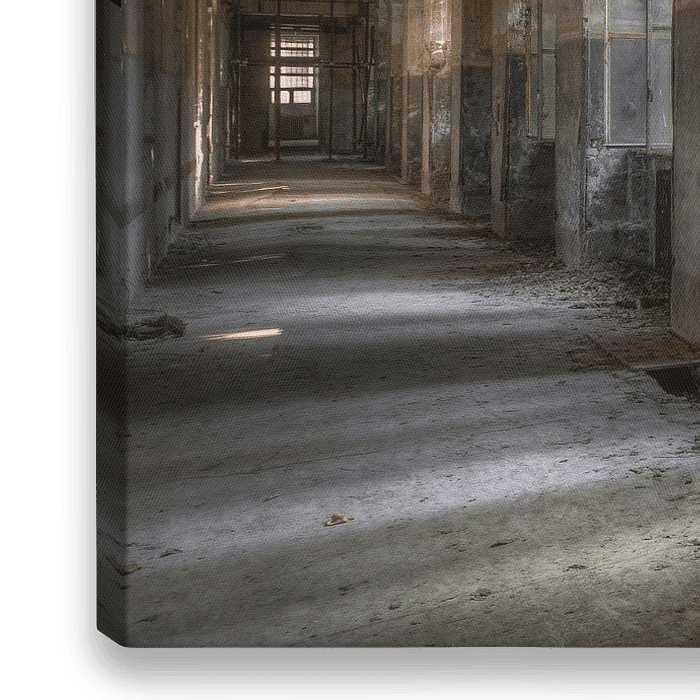 Gang van een verlaten zorginstelling in Italie. Een heel groot gebouw wat aan verval is overgeleverd