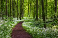 Een pad met wilde knoflook slingert door het geurige lentebos.
