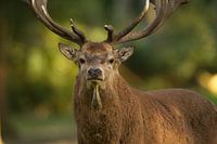 Een Mannelijk Edelhert in herfst setting tijdens bronsttijd
