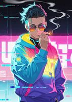 Mannelijke Anime Cyberpunk met glitch effect kunst Roken