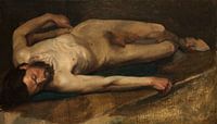 Dit onvoltooide foto dateert van begin jaren Degas als een student aan de kunstacademie in Parijs. In plaats van een verse doek, geverfd hij naakt op elkaar cijfer studie, die gedeeltelijk zichtbaar onder. De tenen en de voet van de eerdere cijfer mogelijk dezelfde model-kan worden gezien in de linkerbenedenhoek net onder hoofd het mannelijk naakt is, terwijl zijn gebaard gezicht in het gebied van de liggende naakt voet weergegeven.