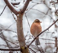Mannelijke vink op besneeuwde boom