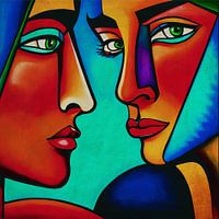 Dit werk in een figuratieve en expressionistische stijl geschilderd in acrylverf heeft als onderwerp de relatie tussen twee of meer mensen. Ik heb bewust de expressionistische meesters goed bestudeerd en geprobeerd de veelzijdigheid van alle kanten van een gezicht op een gestileerde manier weer te geven. Ik heb ook geprobeerd de spanning tussen mensen weer te geven, want hoe je het ook bekijkt, er is altijd een soort spanning aanwezig in een realiteit; dit in de goede en in de slechte zin van het woord. Beschouw dit werk als een spiegel van je eigen relatie.