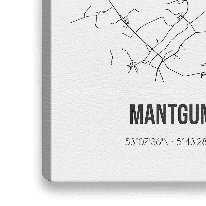 Koop dit abstracte kunstwerk Mantgum (Fryslan) | Landkaart | Zwart-wit van Stad & Wand op canvas, aluminium dibond, (ingelijste) fotoprint, behang en ArtFrame, op maat geprint in Fine-Art kwaliteit.