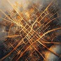 Verlies jezelf in de sprankelende charme van Londen met dit vrolijke abstracte werk, waarin glinsterend goud en warme bruintinten de kaart van de stad omtoveren tot een feest van kleur en vreugde. Hang het op en laat je fantasie de vrije loop terwijl je door de levendige straten van Londen dwaalt.