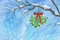 Maretak op een tak is een aquarel schilderij in landschap formaat met de hand geschilderd door de kunstenaar Karen…