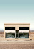 Het kunstwerk toont de winkel van P. Marfa, een minimalistisch gebouw dat lijkt op een boetiek in de uitgestrekte woestijn van Texas. De beige muren en grote etalages tonen modeartikelen. Omgeven door een dor landschap met schaarse vegetatie onder een helderblauwe hemel, mengt de scène hedendaagse kunst met de stille stilte van de woestijn, waardoor de installatie zowel surrealistisch als iconisch aanvoelt.