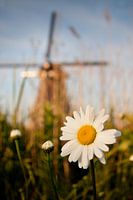 Een margriet bij een van de Kinderdijkse molen.