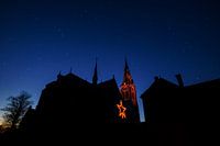 Maria Hemelvaartkerk in Bavel - Breda , Nederland tijdens Kerstmis - onder een mooie nachtelijke sterrenhemel