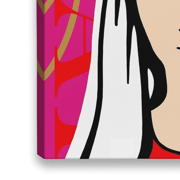 Koop dit portret Maria op roze achtergrond met engeltjes van Jole Art op canvas, aluminium dibond, (ingelijste) fotoprint, behang en ArtFrame, op maat geprint in Fine-Art kwaliteit.
