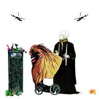 Gebaseerd op een tekening van Maria van Hongarije, door Cornelis Anthonisz., uit de Rijksstudio van het Rijksmuseum, maakte ik deze vrolijke collage. In zijn sterke kleuren doet het aan popart denken.