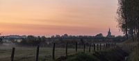 De Mariakerk in Nisse op een miste ochtend met zonsopkomst