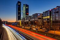De meer dan 126 en 113 meter hoge, met elkaar verbonden torens kijken uit over München en bieden elke bezoeker of thuisblijver die via de A9 komt een indrukwekkend uitzicht op München. Als je goed kijkt, zie je de vele auto's die verantwoordelijk zijn voor de prachtige lichtsporen, evenals een politieauto met blauw licht!