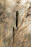 Closeup van een lisdodde bij een waterplas in Markelo, provincie Overijssel. De foto is bewerkt in moody, bruine tinten en er is heel weinig scherptediepte.
