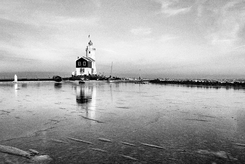 Vuurtoren Marken in wintertijd
