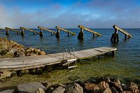 IJsbrekers die de huizen van het buurtschap Rozenwerf net over de dijk beschermen tegen kruiend ijs. Een typisch plaatje van het landschap in Noord-Holland en het Marken meer. Een houten vervallen steiger met een gloednieuwe ijzeren trapje het heldere water in. Gelegen aan een dijk met rotsblokken. Dit schiereiland ligt in het…