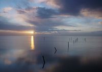 Zonsopkomst Markermeer ter hoogte van IJsselmeerdijk vlakbij Hoorn. Foto is gemaakt door middel van een lange belichting (lange sluitertijd) waardoor het water 'glad' wordt. Aangezien het windstil was is op de voorgrond een reflectie te zien van de lucht.