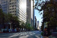 We verkennen het centrum van San Francisco, Californië, Verenigde Staten. Aangezien dit aan het eind van de middag was, waar het normaal erg druk is met mensen die naar huis vertrekken, waren we verrast dat Market Street erg rustig was.