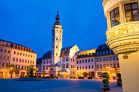 Stadhuis en stadsapotheek op de markt van Gera in Gera, Thüringen.
