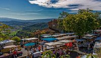 Typische Franse marktjes, ik hou ervan. Deze markt in Gordes middenin in natuurgebied Luberon in de Provence in Frankrijk met in de achtergrond het dromerige landschap...