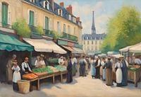 Markt in een Frans dorp in de stijl van Caille Pissarro.