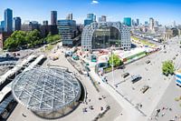 De skyline van Rotterdam met voorop de Markthal in aanbouw. De Markthal is de nieuwe trekpleister van Rotterdam. In de Markthal kan je werkelijk je ogen uitkijken.