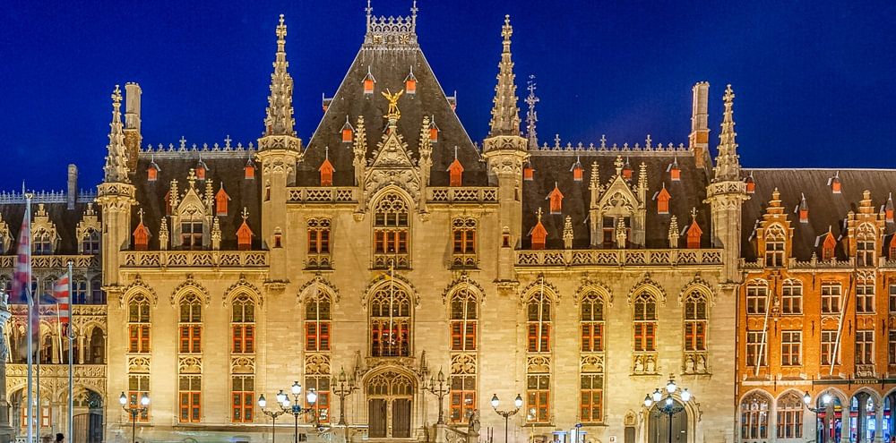 Een mooi plein in het centrum van Gent is de markt met het monument en het stadhuis op de achtergrond