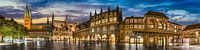 Stadspanorama met de Mariakerk, het stadhuis, de Ratskeller, de Pranger en de Kaak.