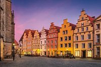 Historische gebouwen op het marktplein van Osnabrück, Duitsland tijdens zonsondergang
