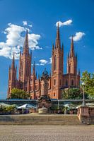 Marktsäule und Marktkirche, Wiesbaden, Hessen, Deutschland