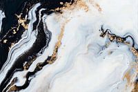 Een fascinerend samenspel van gedurfd zwart, stralend wit en elegante goudtinten ontvouwt zich hier in zachte golven en spannende texturen. Deze dynamische compositie brengt een vleugje luxe en stijl in de woonkamer en verandert de kamer in een moderne oase van rust en creativiteit.