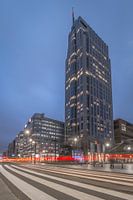 Het Marriott hotel aan de Weena in Rotterdam tijdens het zogenaamde blauwe uurtje.