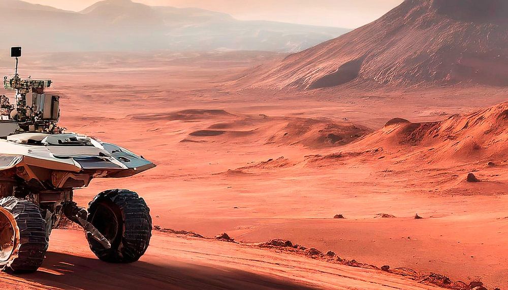 Mars met landschap en maanvoertuig