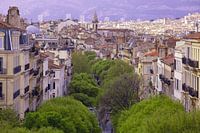 Zicht op de herenhuizen in Marseille gezien vanaf het station Saint Charles.