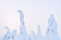 In Lapland valt er soms zo veel sneeuw en staat er in verhouding weinig wind, dat zorgt ervoor dat er ontzettend dikke pakken sneeuw op de bomen ontstaat.