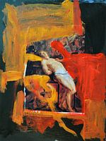 Een prachtige mix-media collage op basis van het werk van Petrus Paulus Rubens: martelaarschap van Sint-Laurentius.