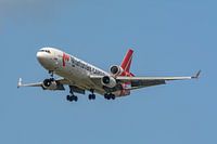 Een McDonnell Douglas MD-11 van Martinair Cargo (PH-MCR) vlak voor de landing op de Zwanenburgbaan.