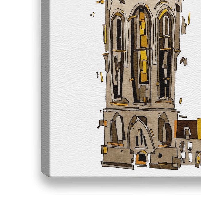 De iconische toren van Groningen in een aparte print met een vleugje chauvinisme. Gemaakt met inkt en aquarel, digitaal opgehelderd